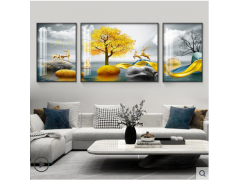 轻奢客厅装饰画沙发背景墙壁画现代简约大气三联画挂画镶钻晶瓷画